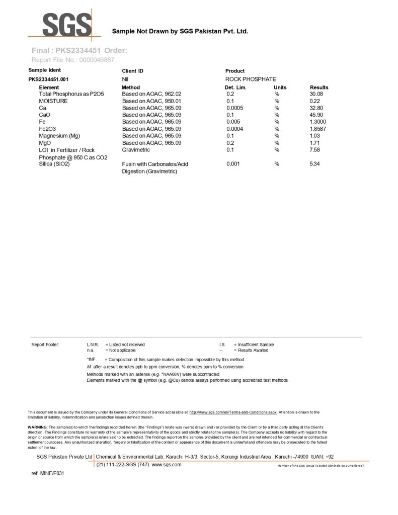 Specifications of Rock Phosphate: